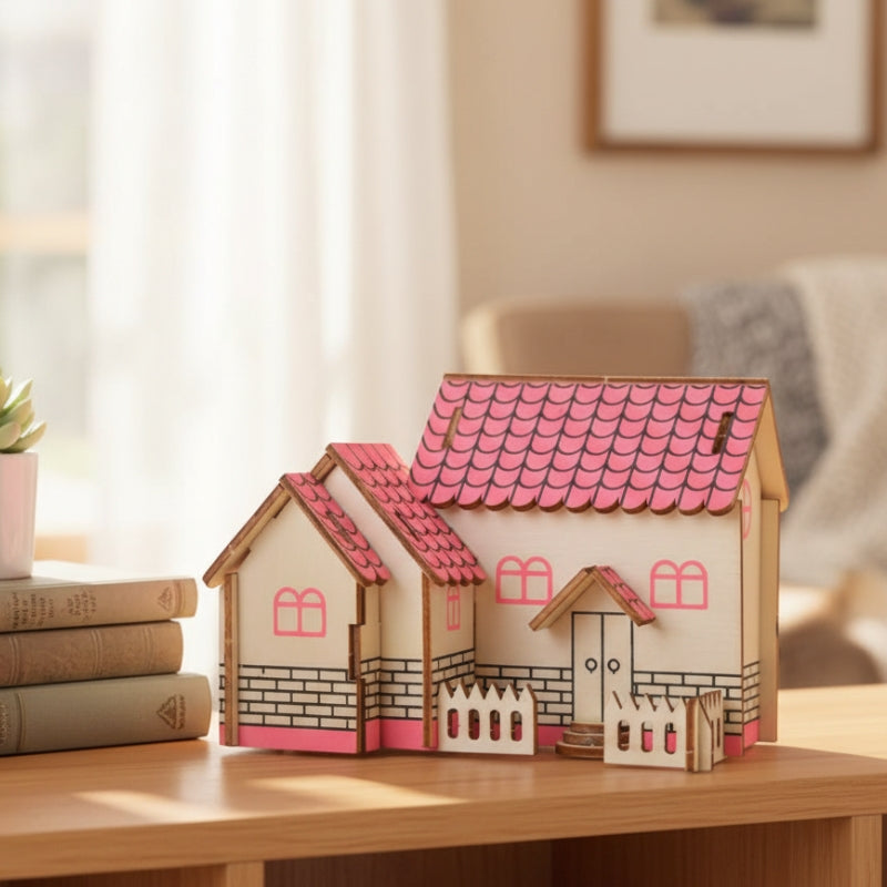 Ontspan, bouw en geniet van creatief speelplezier met PurpleHouse 3D Houten Bouwpuzzel – een leerzaam en charmant project dat je met trots kunt neerzetten!