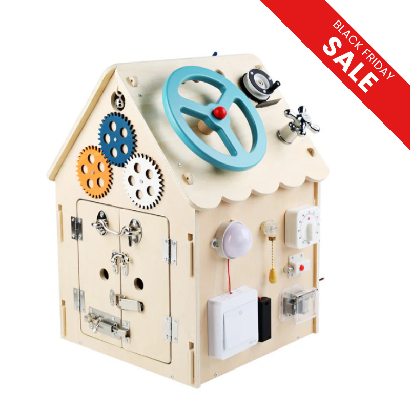 Ben je op zoek naar educatief speelgoed dat écht bijdraagt aan de ontwikkeling van je kind? Het Montessori Activiteitenhuis is handgemaakt van stevig, duurzaam hout en zit boordevol interactieve elementen: tandwielen, sloten, schakelaars, schuiven, knoppen en nog veel meer. Perfect voor nieuwsgierige peuters en kleuters die al spelend willen ontdekken!
